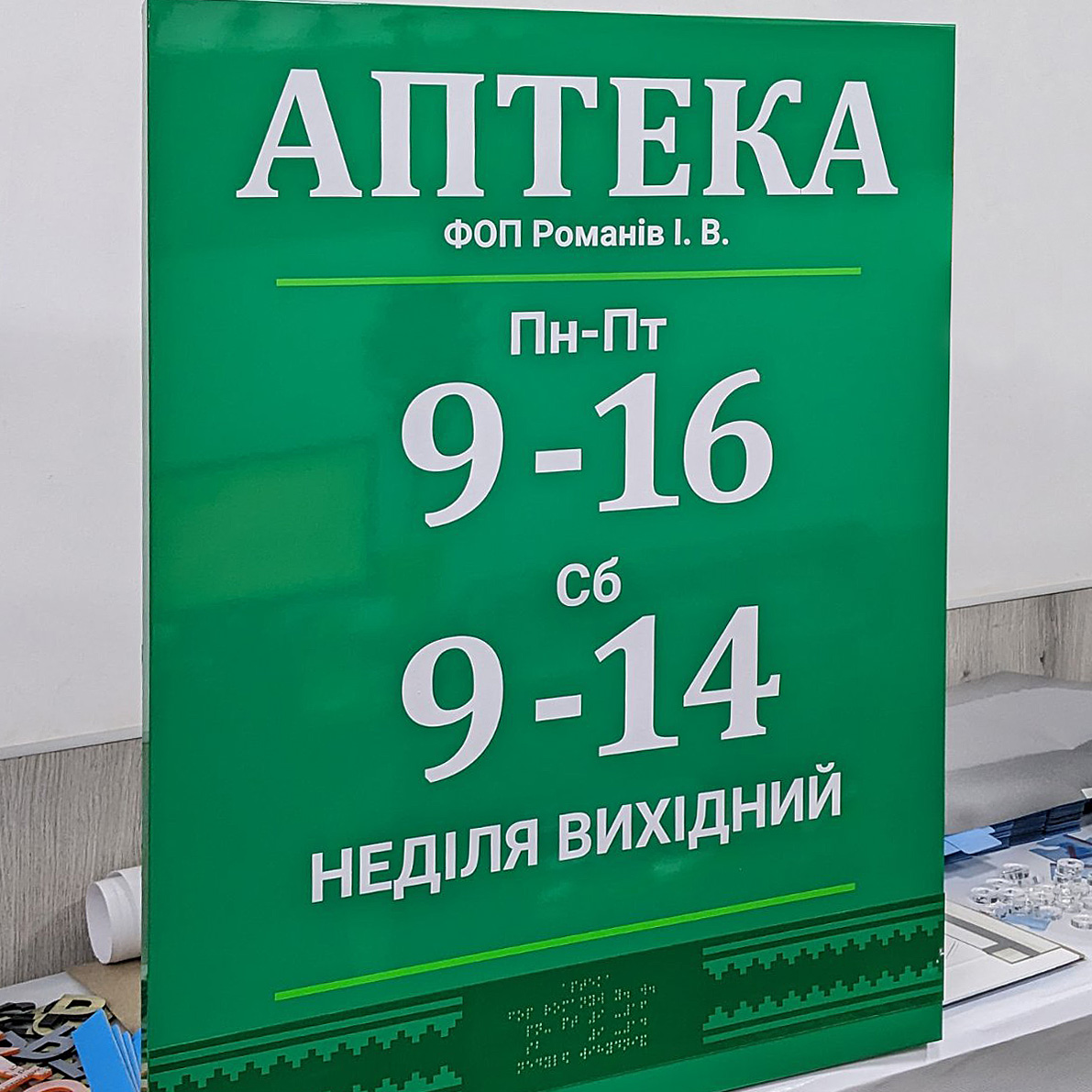 Наша команда працює над кожним замовленням індивідуально - це гарантує, що вивіска не потускніє з часом та буде працювати при будь-яких погодніх умовах. Завдяки власному виробництву, ми гарантуємо не тільки високу швидкість виробництва зовнішніх вивісок та оформлення, але й ідеальну передачу кольорів.